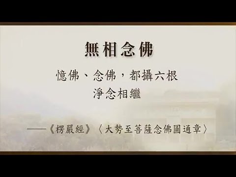 那另外還有人是修無相念佛,這個就是《楞嚴經》〈大勢至念佛圓通章〉所說的「憶佛、念佛,都攝六根,淨念相繼。」——《楞嚴經》〈大勢至念佛圓通章〉。這個人呢,通常他是具有深厚的善根福德,能夠去深入的思惟念佛法門,而且能夠知道要不斷的提升自己念佛的層次。雖然說他是主修念佛法門,可是他也知道這個定要如何來修,也能夠攝取這個修定的知見,知道說這個定就是要制心一處要淨念相續,也就是要一念相續。因為淨土法門以及修定法門的那個基本知見他都已經具備了,所以在精進不斷的修學過程中,這樣自然而然的就能夠到達無相念佛的層次了——心中憶佛的念。他是具備了種種的善根福德,具備了慧以及定的知見,然後不以有相的這樣子來憶念著佛,成為了無相的憶佛。那麼他自己了知,必須依著這個方法去修學念佛,這個才是真實念佛。這樣的人如果能夠進而修學無相憶念拜佛,那麼就可以很容易的再把這個無相念佛法門,運用到日常生活當中,那麼動靜當中都能夠有「無相念佛」的功夫,這樣子能夠一心繫緣於他所念的佛,心不散亂,憶念相續不斷。一旦能夠修成這樣的念佛法門,並且能夠在日常生活當中,時時的保持著這樣的功夫,這種人他不只是對於自己有信心,那他也對三寶生起信心了——表示佛所說、菩薩所說,真實不虛!